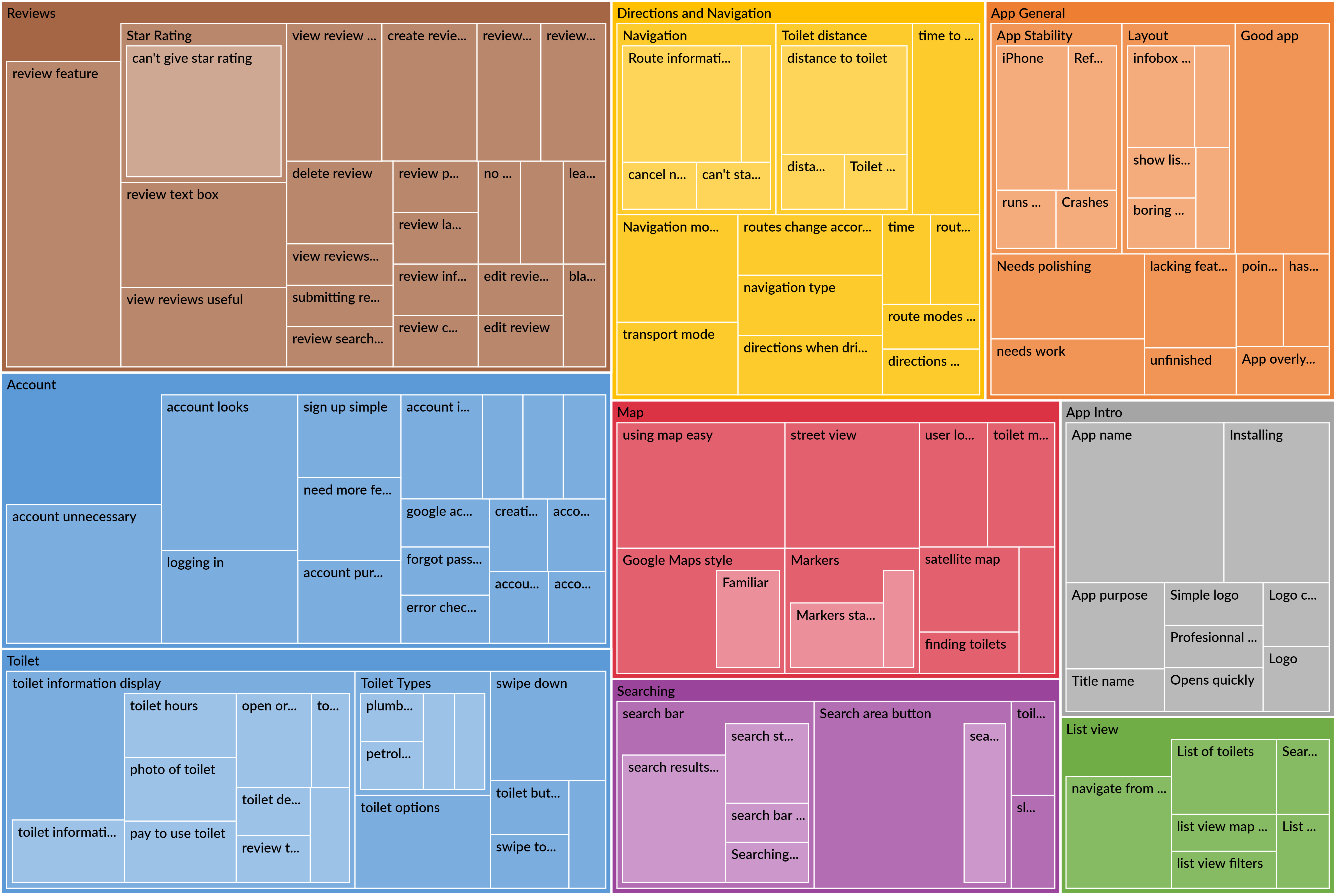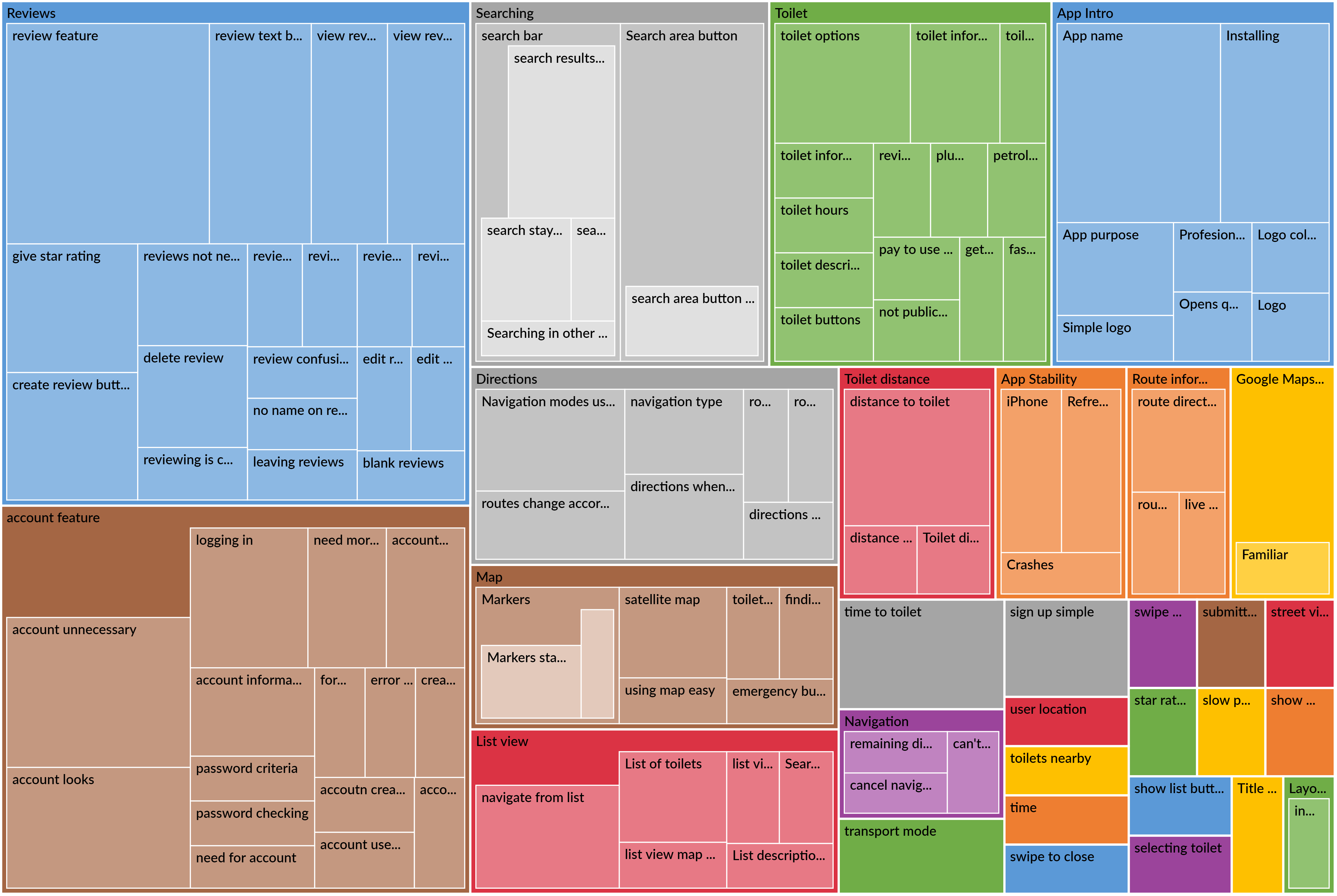 Finally, it was noted that this information gathered will be of use to help developers of Loocate make future design decisions centering around the analyzed data, with developers keeping positively viewed themes similar to how they are now, and negative themes to be carefully examined, and potentially adjusted or discarded (with the caveat that the application was in early development, so some of the negative feedback will not necessarily take this into account, as this information wasn’t clearly provided to users).