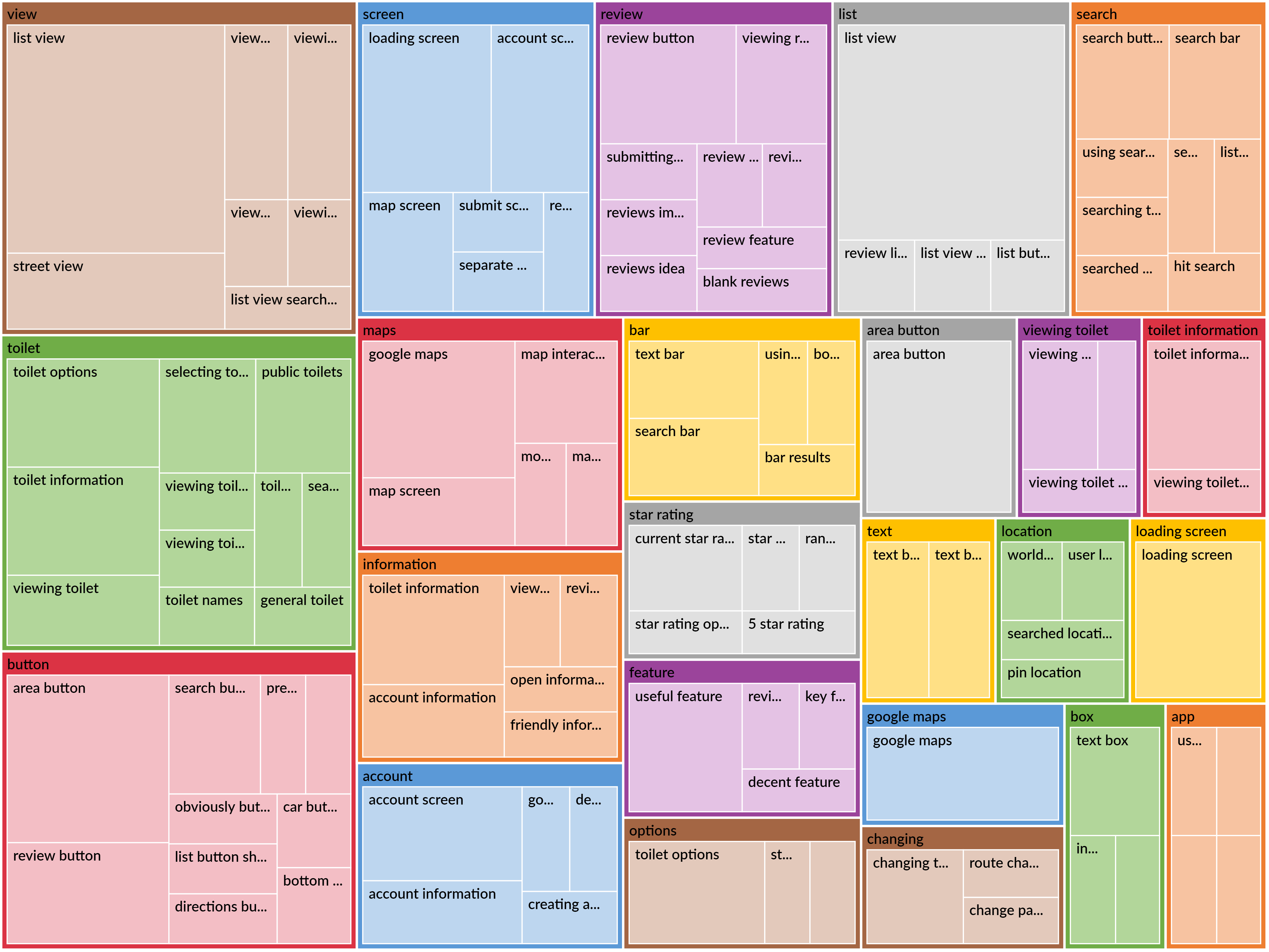 Negative sentiment here can be credited to the search bar having issues and the positioning of the search area button. Some positive sentiment towards the location markers and ease of visibility.